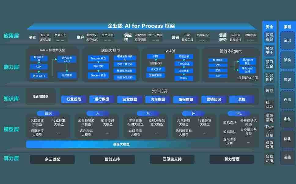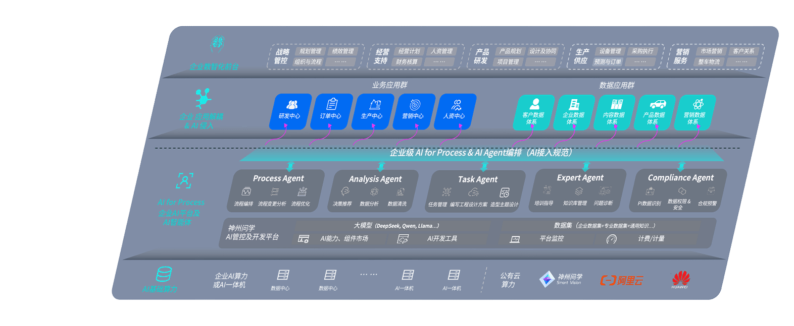 端到端的一站式AI工作空间深度融合了从企业战略规划到日常经营的全流程业务板块,,,定向解决车企内部领域多、、部门多、、链条长、、场景碎片化等难题,,,支持车企快速构建以AI为核心的生产力写作体系,,,实现任务执行与AI能力的无缝集成与交互