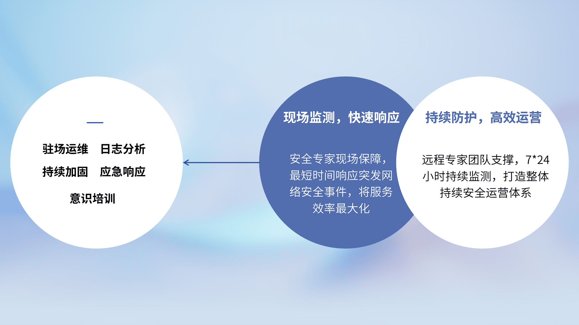 7X24小时持续监测安全事件,保持安全策略有效性,降低资产脆弱性风险,,,精准拦截黑客攻击,,,,减少被黑客利用的机会,,,,第一时间遏制,,降低损失。。。